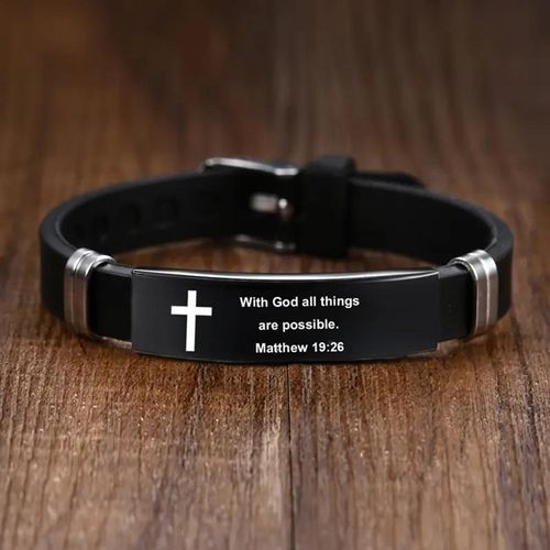 Cross Bracelet Inspirational Bible Quotes Faith Christian Silicone ID Wristband Religious Gift Men and Women Stainless Steel Rubber Adjustable Bracelet